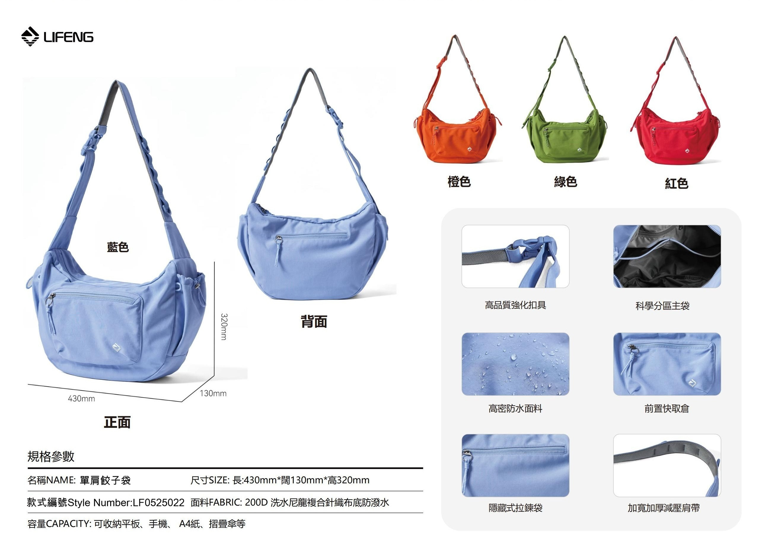 輕盈潑水單肩餃子袋